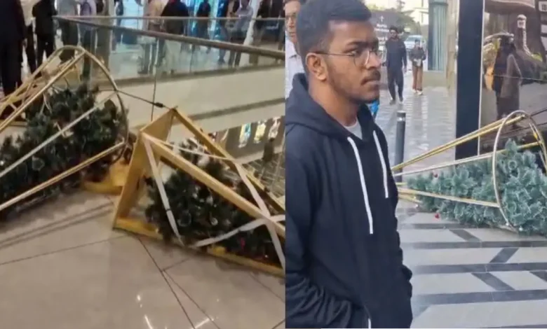 Ahmedabad: Tensions flared at Palladium Mall in Ahmedabad’s Thaltej area on Saturday following protests against Christmas and New Year’s Eve decorations. Members of Bhagwa Sena staged a demonstration inside the mall and vandalized the Christmas tree display.