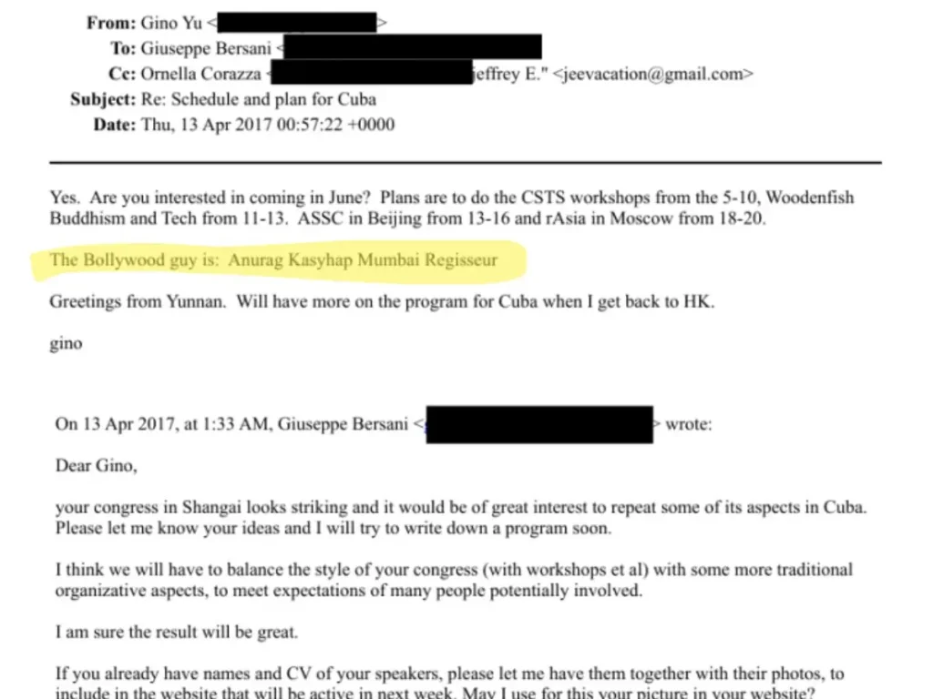 The emails reportedly pertain to Epstein’s travel plans to destinations such as Cuba and Shanghai, identifying Kashyap among several “cool people” anticipated to participate in workshops centered on Buddhism, technology, and medicine. The filmmaker’s name appears alongside others, including Ben Goertzel, Bruce Damer, and DJ Spooky.
