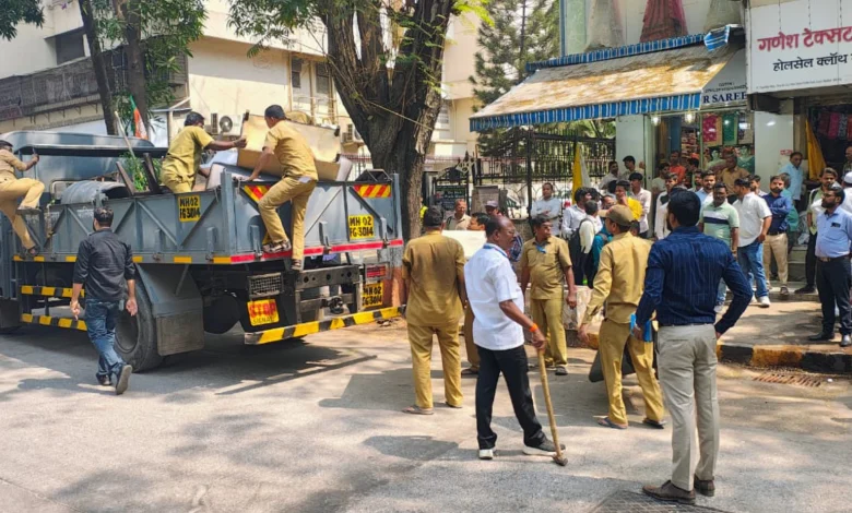 Mumbai: Following the conclusion of the Brihanmumbai Municipal Corporation elections, large-scale operations to remove encroachments that had mushroomed across Mumbai are being undertaken. As part of this initiative, the civic body’s F South Ward carried out action on Friday in Dadar (East) near Dadasaheb Phalke Road and Mumbai Marathi Granth Sangralay Road.